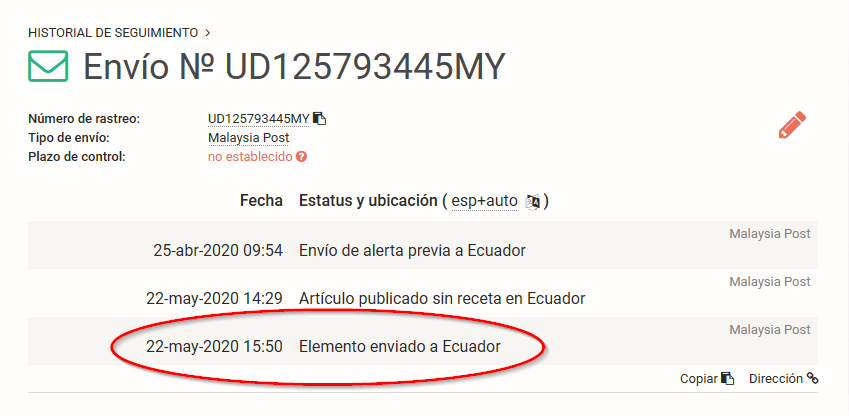 2) A veces los envíos tiene dos números de guías. La herramienta postal.ninja me ha ayudado a veces a encontrar el número de guía secundario, que por mala suerte, justo fue el que correos eligió como número de guía.